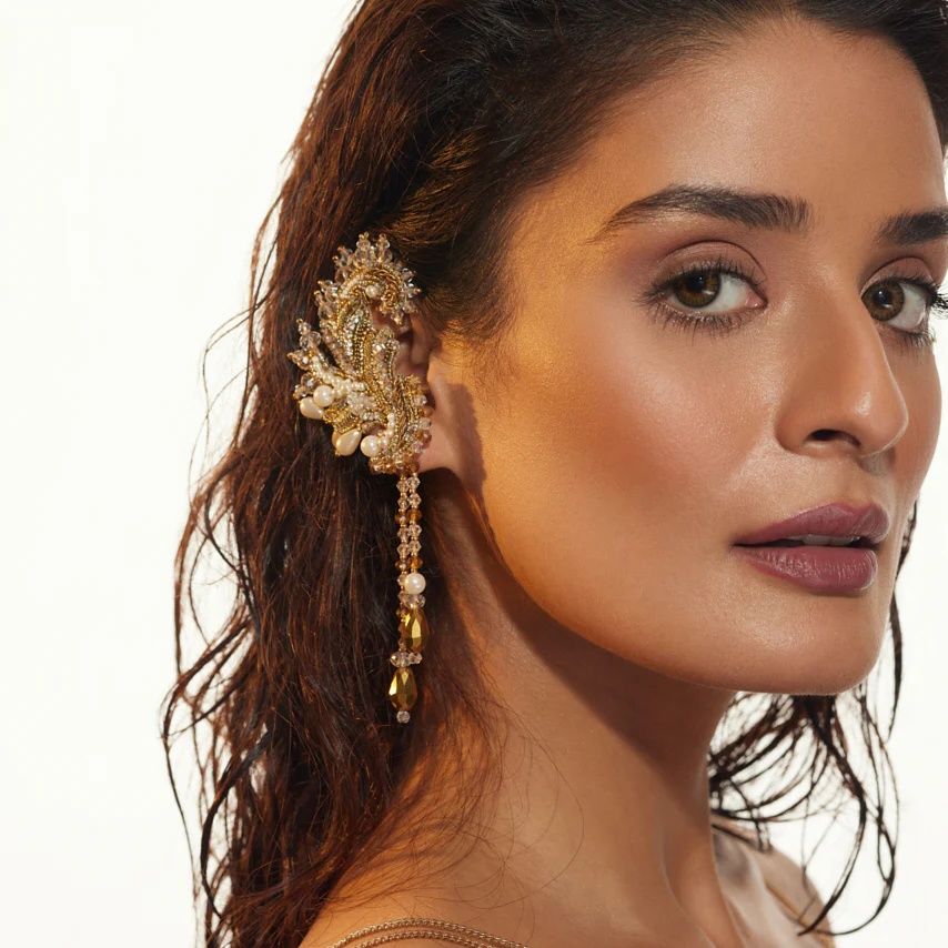 - Designer gold ear cuffs with intricate detailing